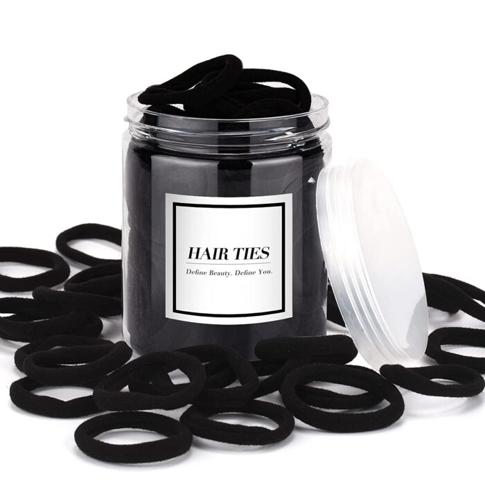 Strong and gentle on your hair, these seamless black hair ties are perfect for thick, curly, or heavy hair. Made with soft cotton, they offer all-day hold without pulling or damage.